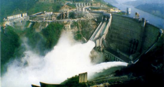1986年8月2日,東江水電站正式關(guān)閘蓄水,雙曲大壩鎖住滾滾東江水,將其定格成碧波萬(wàn)頃的湘南明珠——東江湖。大壩兩側(cè)有三條滑雪式溢洪道,每當(dāng)瀉洪時(shí),湖水從溢洪道飛瀉而下,再騰空躍起,頃刻間化成雨霧,迷漫整個(gè)峽谷,其勢(shì)如萬(wàn)馬奔騰,其聲似萬(wàn)鈞雷霆。身歷其境,如夢(mèng)如幻,仿佛在縹緲之中,羽化飛升。即使在幾里開(kāi)外,仍感水星拂面,頗具“盤(pán)空舞雪飛泉落,撲面銀花細(xì)雨來(lái)”的詩(shī)畫(huà)意境。