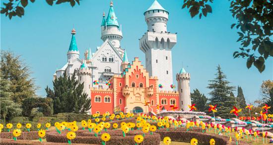 愛情谷,這里可以看到瑞士大鐘塔和歐洲小鎮(zhèn),處處都是典型的歐式建筑。右邊的丹麥國王加冕城堡,是個明星夢工廠和恐怖城。與它相鄰的那座綠頂紅墻的建筑是荷蘭海牙國際法院,內部是一個世界蝴蝶博覽館,在那里可以免費欣賞到各種精美的蝴蝶標本。左邊的湖水叫天鵝湖,取名于俄國作曲家柴可夫斯基的同名舞劇《天鵝湖》,湖邊那三座高大的風車是荷蘭的象征。右邊地上的泉眼是旱噴泉,在旱噴泉上方的建筑是意大利圣三山教堂,它與原型比例是1:1.5,每年都有許多對新人在這里舉行西式婚禮。這里還有一個歐洲小鎮(zhèn)仿建的是德國和法國民居,比例為1:1的歐式風格,被開放成商場和服裝出租點。